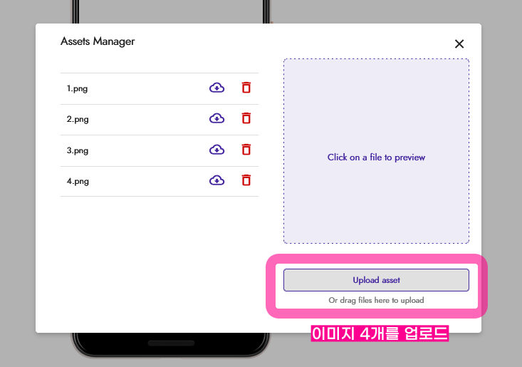 4개의 이미지를 모두 업로드하면 어셋준비는 끝 !