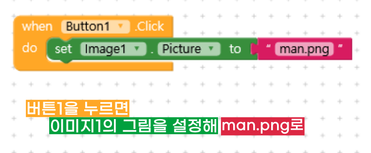 Button1은 남자라는 버튼이에요. 누르면 Image1의 그림이 man.png로 나타나죠.