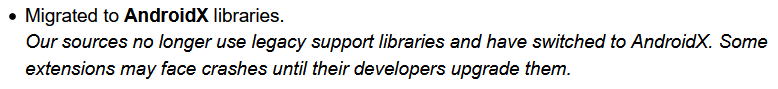 이런 경우는 본인이 해결할 수 없다면, 익스텐션 개발자가 AndroidX에 맞게 익스텐션을 업데이트해주길 기다려야한다. 이미 커뮤니티에는 문제 발생을 토로하는 글들과 업데이트한 익스텐션이 올라오고 있다.