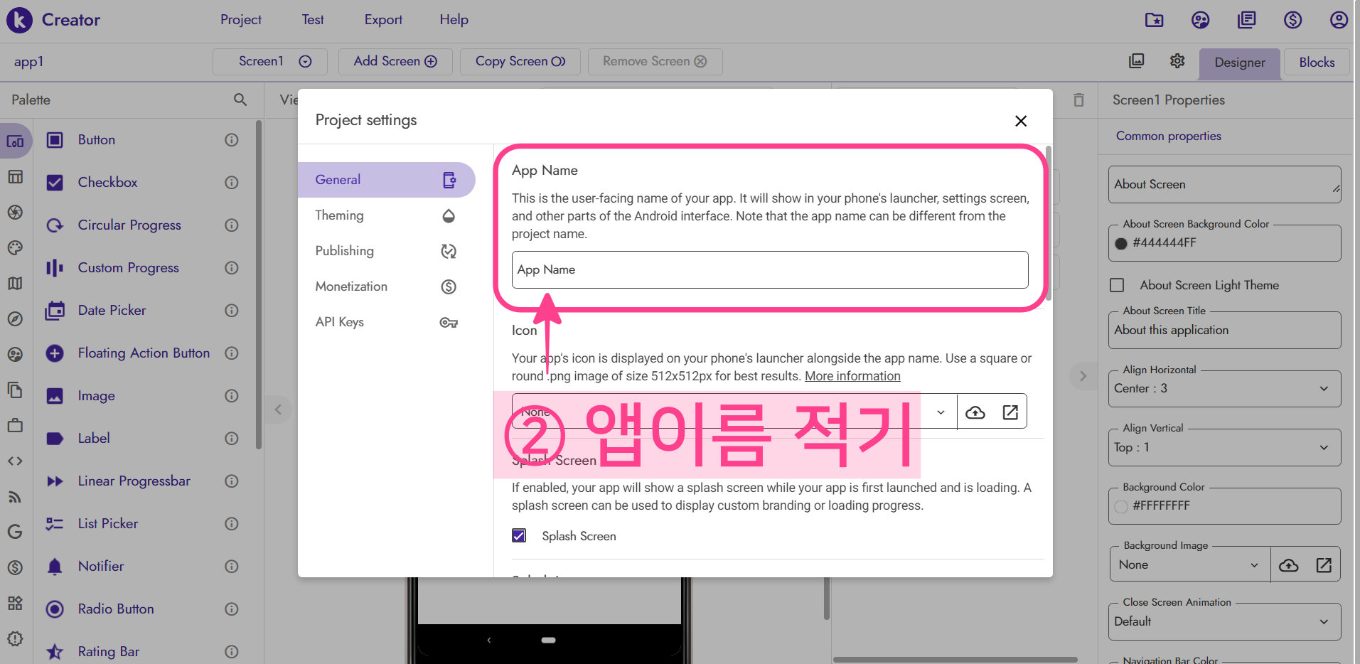 '카톡_1차수정본', '카톡_2차수정본', '카톡_최종출시본' 이런 식으로 자유롭게 프로젝트 이름을 바꿔주면 됩니다. 개발자만 알아보면 되는 거니까요. 최종 출시 할 때는 기존에 정해놓은 카카오톡 이라는 앱이름을 그대로 사용하면 되고요.