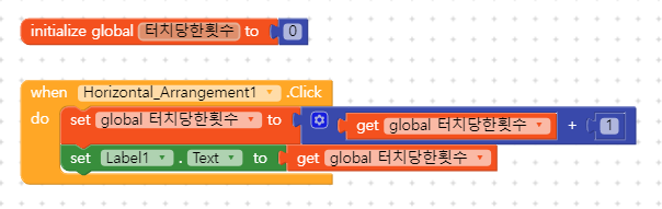 '터치당한횟수' 변수는 : 기존 터치당한횟수에 1을 더한 값으로