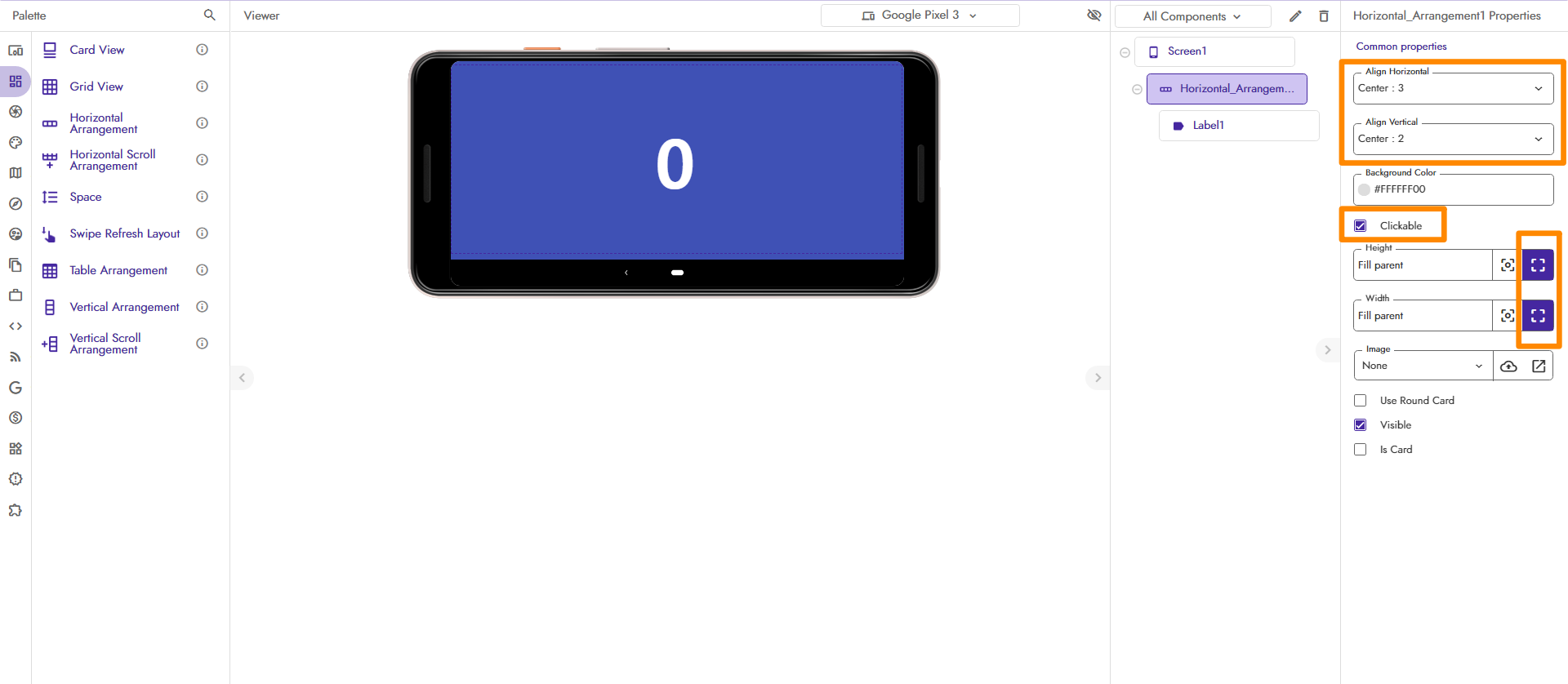 Width와 Height를 화면에 꽉 차게 Full parent로 바꿔주세요.