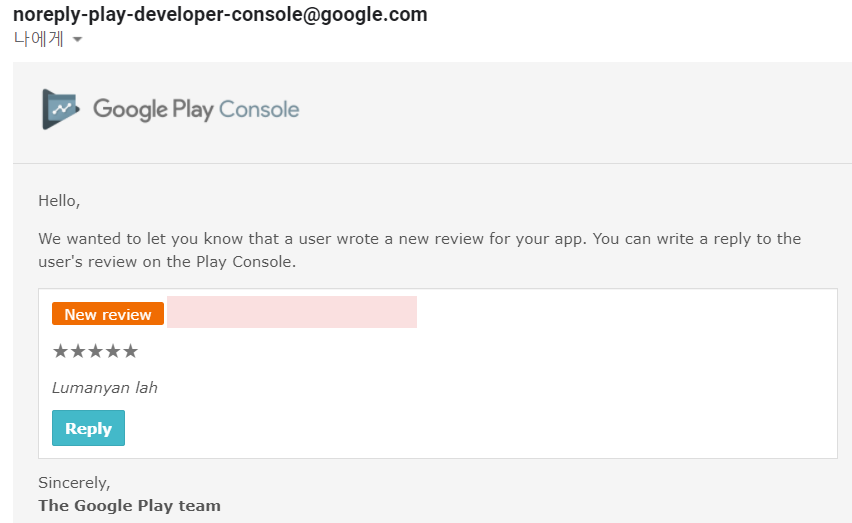 매일 아침, 노트북을 켠 나의 루틴은 대부분 이렇게 진행된다. 메일확인, 애드몹확인, 플레이콘솔확인, 미디엄메일 읽기. 정말 가끔씩 이 메일확인 과정 중에 즐겁고 신선한 경험이 추가된다. 그건 바로 내 앱에 리뷰가 달렸다는 메일을 확인하는 것.
