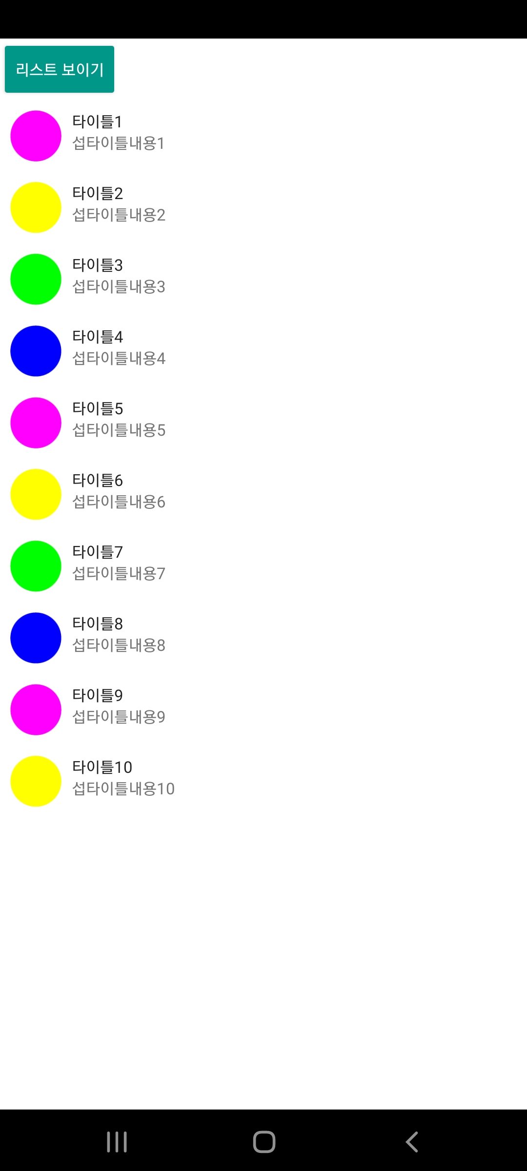 이제 리스트 보이기라는 버튼1을 누르면 아래와 같은 리스트가 나온다.