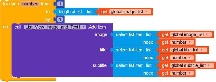 그 다음으로는 for each 블록을 넣는다. 처음에 준비한 3개의 리스트들을 하나하나씩 리스트틀에 넣는 과정이다.