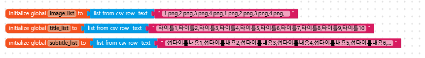 일단 간단하게 컴마로 구분되는 리스트로 3개를 만들었다. 각각 10개의 항목이 들어가있다. 이미지는 아래의 png 이미지들을 1 2 3 4로 이름지어 assets에 넣었다.