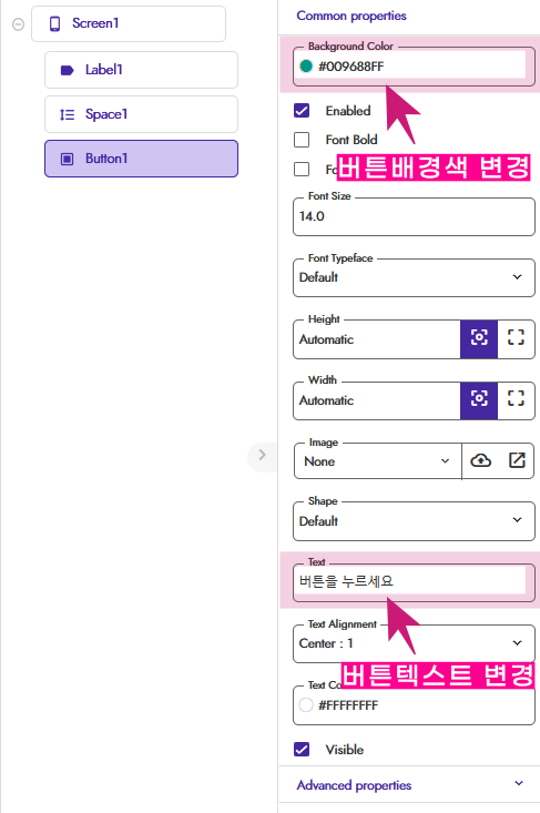 버튼 색도 좀 바꾸고, 버튼 위에 글자도 좀 바꿔볼게요.