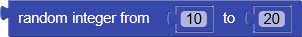 랜덤블록은 지정한 범위에서 무작위로 선택한 숫자 하나를 보여주는 기능이에요. 기본적으로 1부터 100사이의 숫자로 지정되어있지만, 범위는 마음대로 조정이 가능해요. 앞 숫자는 범위의 시작, 뒤 숫자는 범위의 끝을 적으면 돼요. 10부터 20까지의 숫자 중에서 하나를 골라달라는 코딩을 할 때는 앞부분 숫자 블록에 10을 적고, 뒷부분 숫자블록에 20을 적으면 돼요.